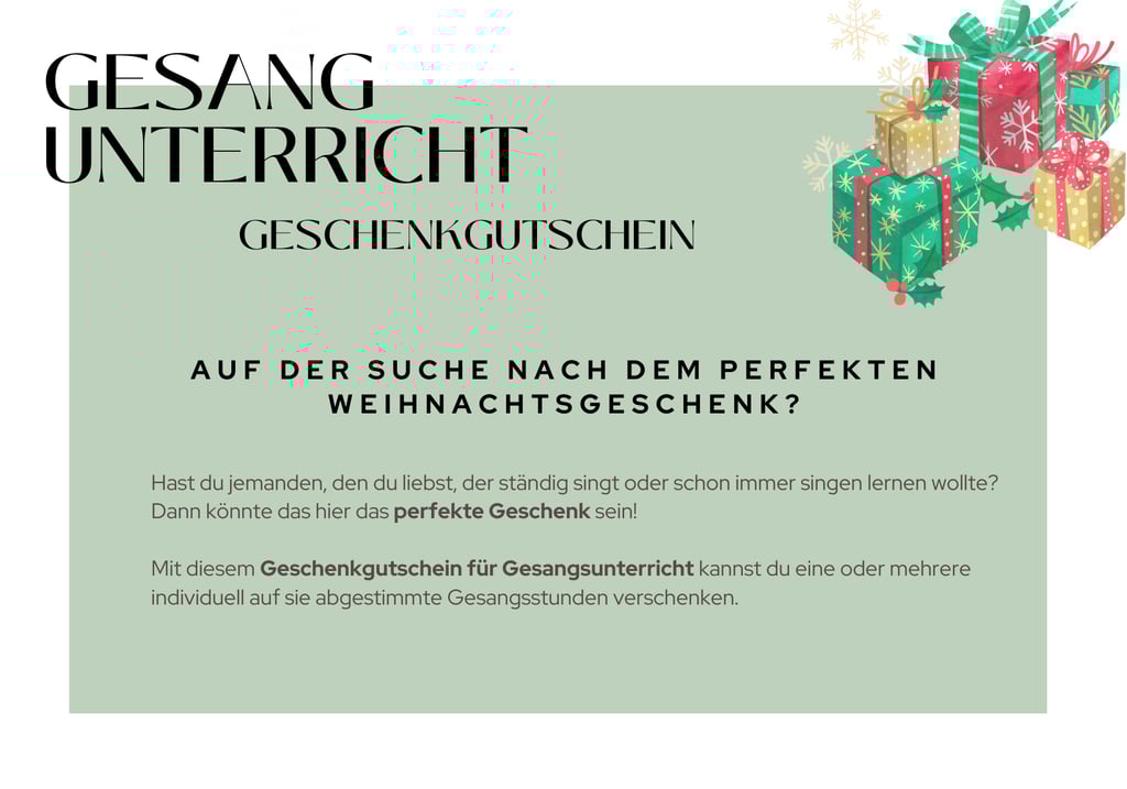 💌 Du entscheidest, wie viele Gesangsstunden du verschenken möchtest – von einer einzelnen Stunde bis zu einem kompletten Paket.